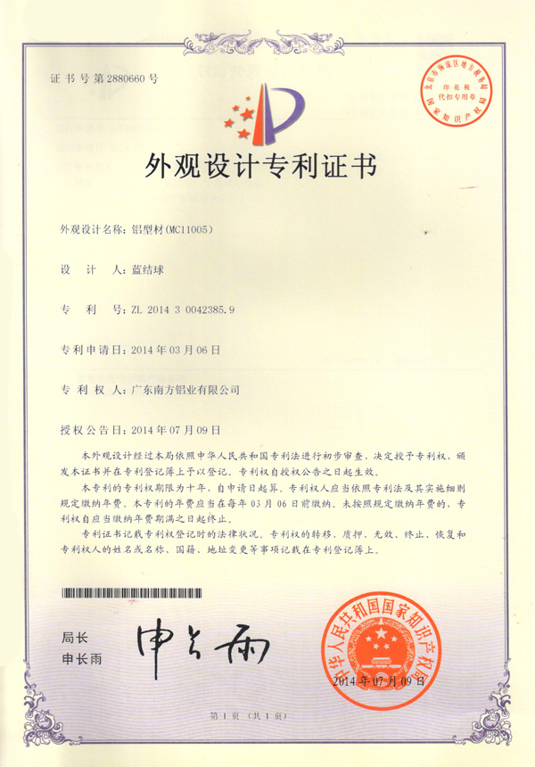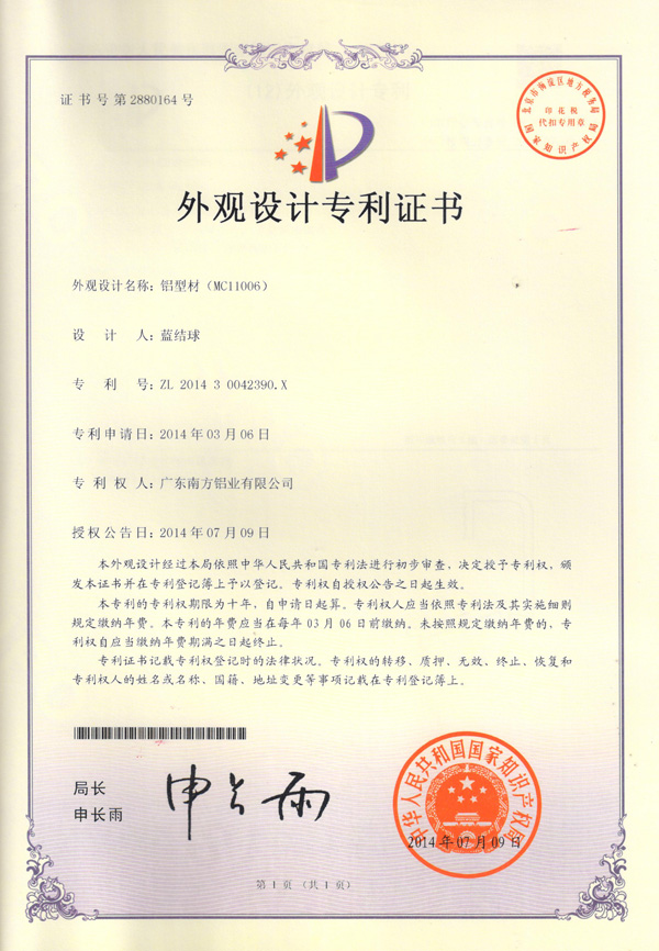 外观设计专利证书