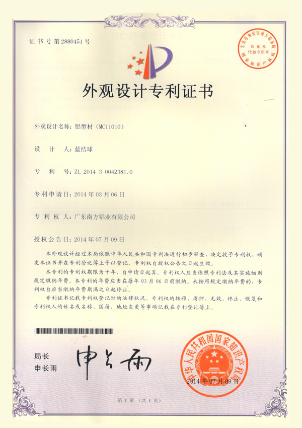 外观设计专利证书